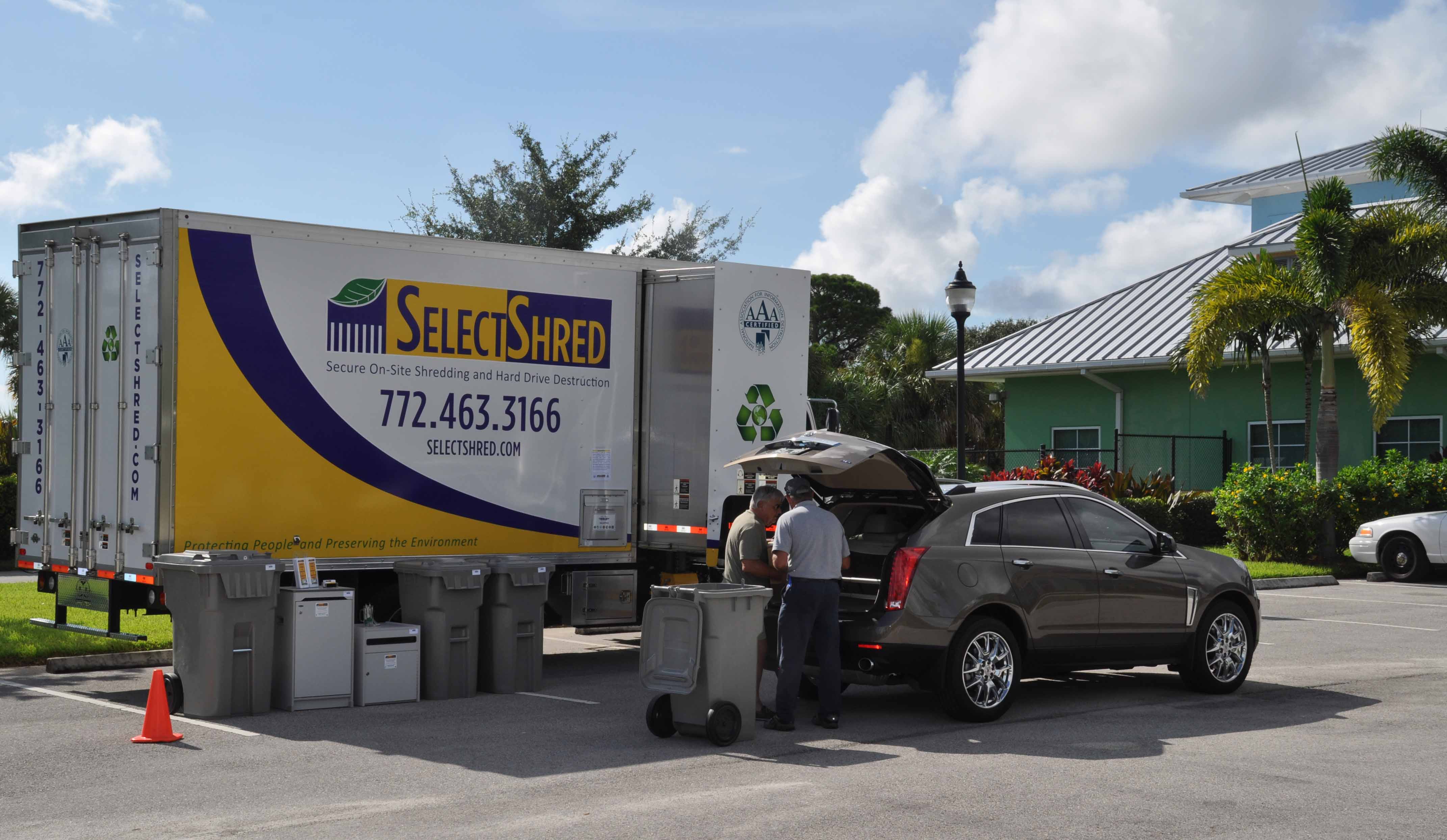 SelectShred is a locally owned and operated independent mobile document destruction company providing secure on-site document shredding and on-site hard drive destruction service for business, professional, medical, and residential communities in Martin, St. Lucie, Indian River, Palm Beach, and Okeechobee Counties. We provide a service that combats fraud by helping to fight identity theft, safeguard confidential information, protect consumer privacy, and secure trade secrets and proprietary information.